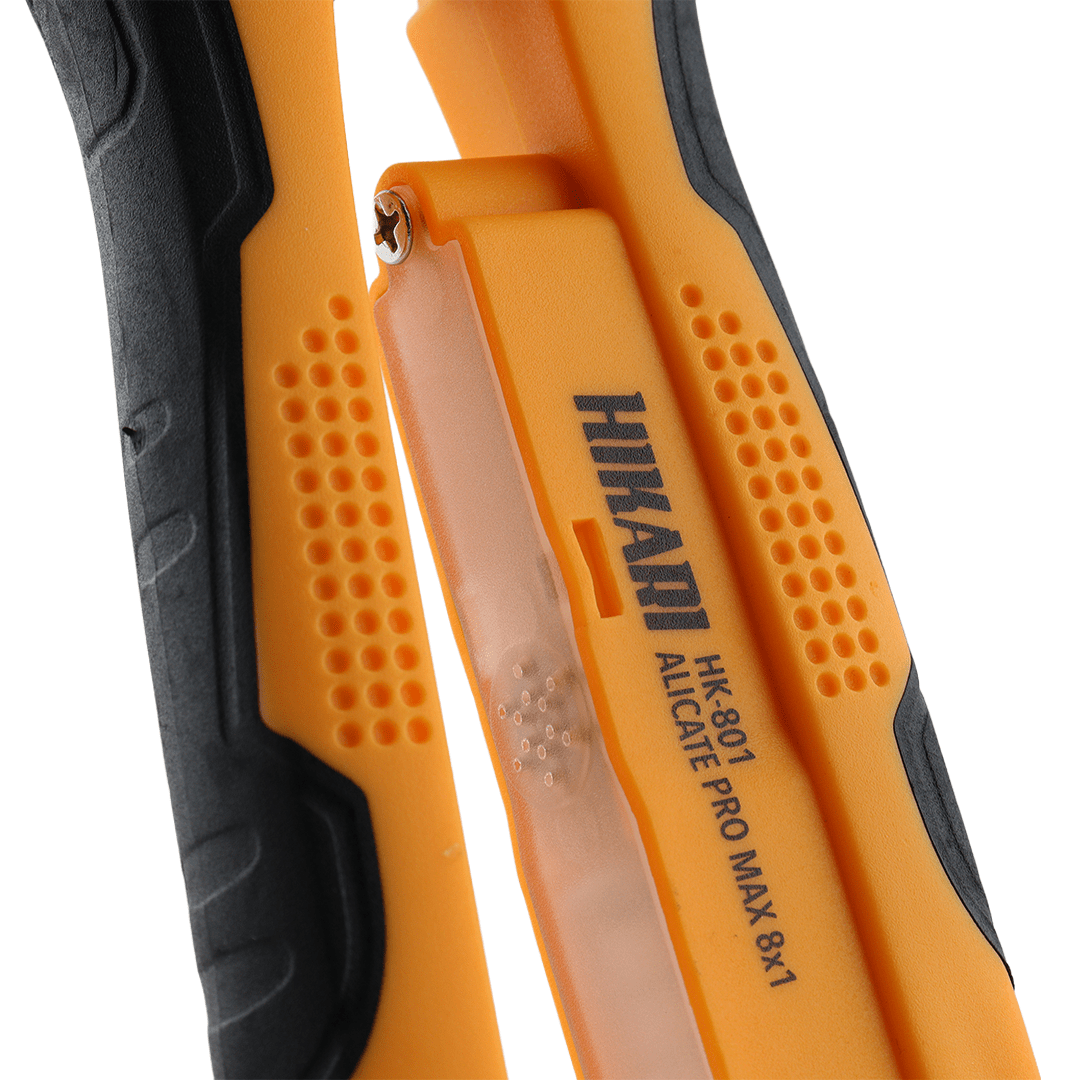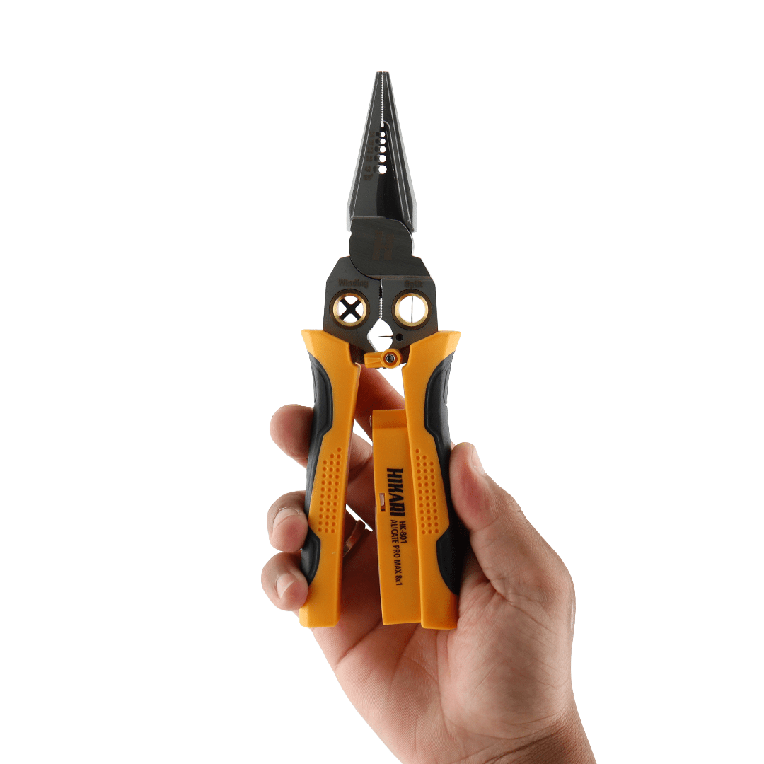 O ALICATE PRO MAX 8 EM 1 - HK-801 foi criado para ser o alicate profissional multi-habilidades do eletricista. Em uma única ferramenta, ele reúne funções essenciais de preparação e acabamento de cabos, substituindo vários alicates separados e otimizando espaço na maleta de ferramentas.