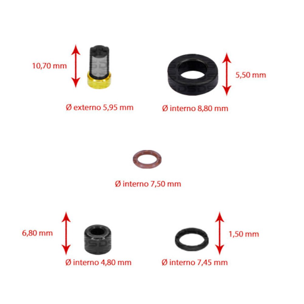 O'rings: 04 | Anéis: 04 | Filtros: 04 | Ponteiras: 04 | Anel Espaçador: 04Aplicação: