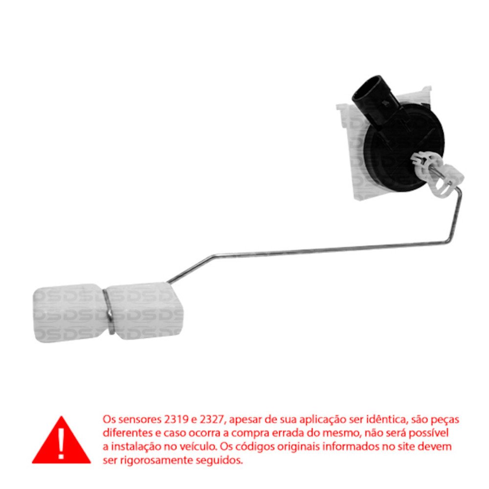 Cheio: 38 ± 4 ohms | Vazio: 283 ± 4 ohms | Obs: Os sensores 2319 e 2327, apesar de sua aplicação ser idêntica, são peças diferentes e caso ocorra a compra errada do mesmo, não será possível a instalação no veículo. Os códigos originais informados no site devem ser rigorosamente seguidos.Aplicação: