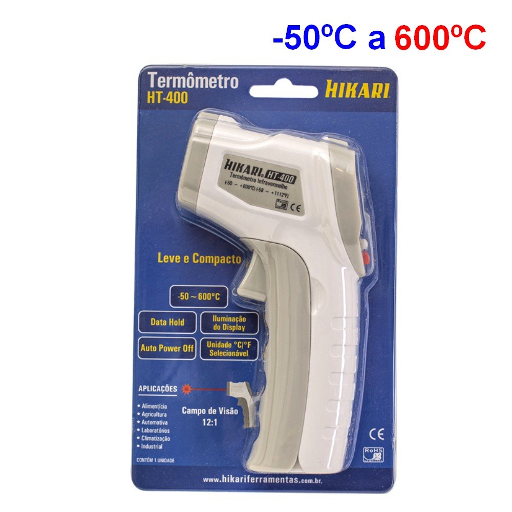 Com Sua Ampla Faixa De Temperatura, Que Varia De -50°C a 600°C, E Com Sua Mira a Laser Que Facilita a Visualização Da Área Que Está Sendo Medida, Com Campo De Visão De 12:1, Esse Termômetro Oferece Uma Medição Precisa e Abrangente. Além Disso, Recursos Como Medição Contínua e Registro Automático Da Última Medida (Hold) Contribuem Para a Eficiência Desse Equipamento, Reduzindo o Tempo Necessário Para Diagnósticos e Trabalhos.